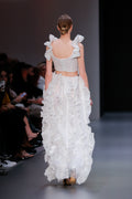 Vestido de novia con volantes dos piezas, con tejido fantasía.