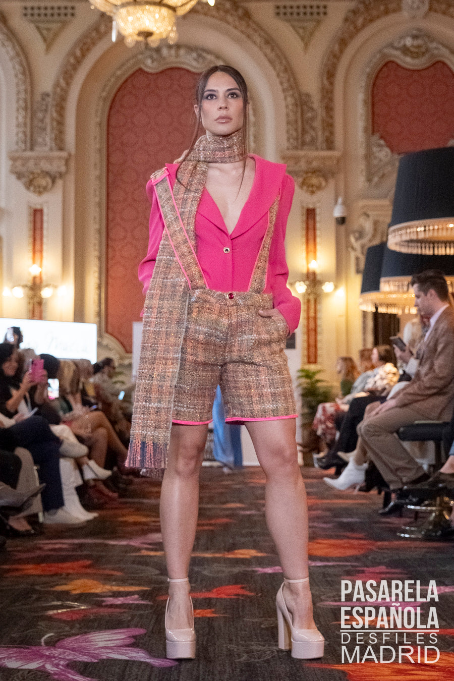 Short con tirantes con tejido multicolor Chanel. Bufanda a juego.