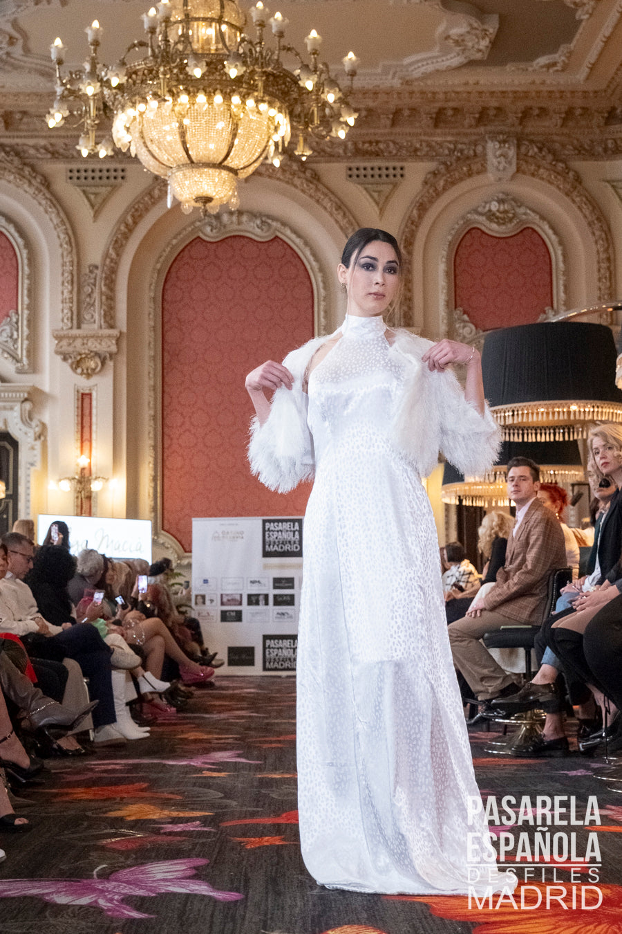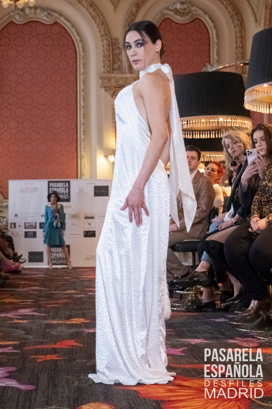 Vestido halter de novia con un tejido de animal print, con opción bolerito torero en diferentes tejidos.